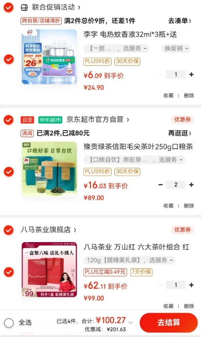 叠加上方3张券,一起100元左右,折毛尖礼盒16,八马礼盒62