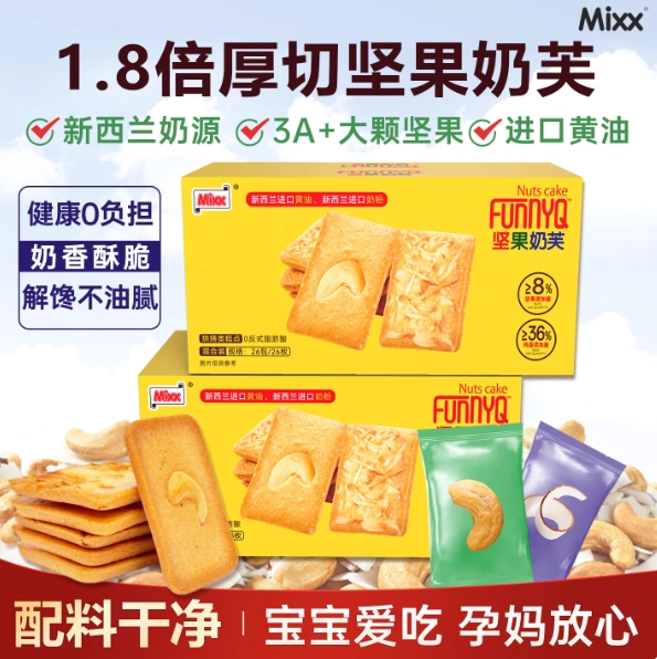 9.3元包邮!mixx.厚切坚果芙脆饼干26包