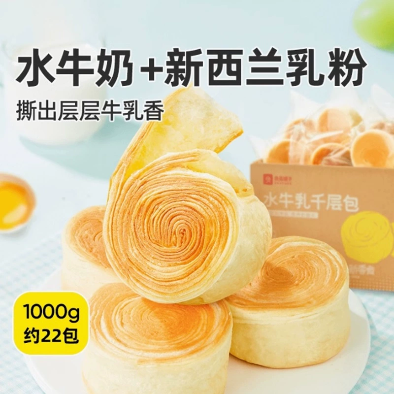 ¥15.9 【良品铺子】水牛乳千层手撕面包1kg 27.9