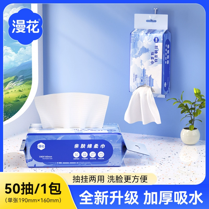 ¥1.99 天降到手1.99!漫花抽挂两用洗脸巾50抽 2.99