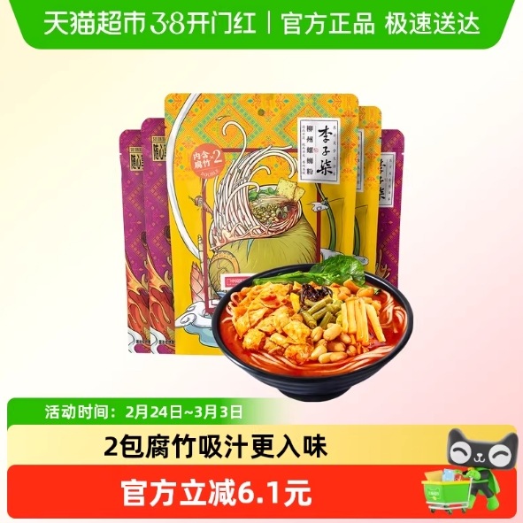 23.5元包邮!李子柒 柳州螺蛳粉 5袋组合(爆椒280g*3+动心包288g*2)