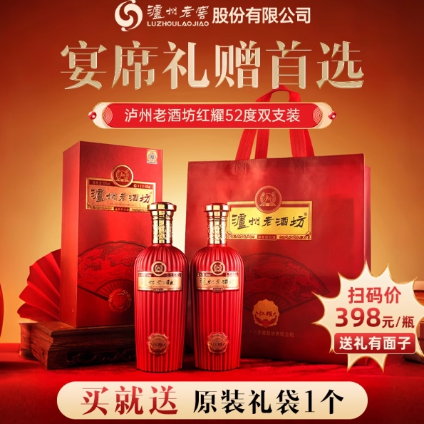 170元!泸州老酒坊红耀500ml*2瓶