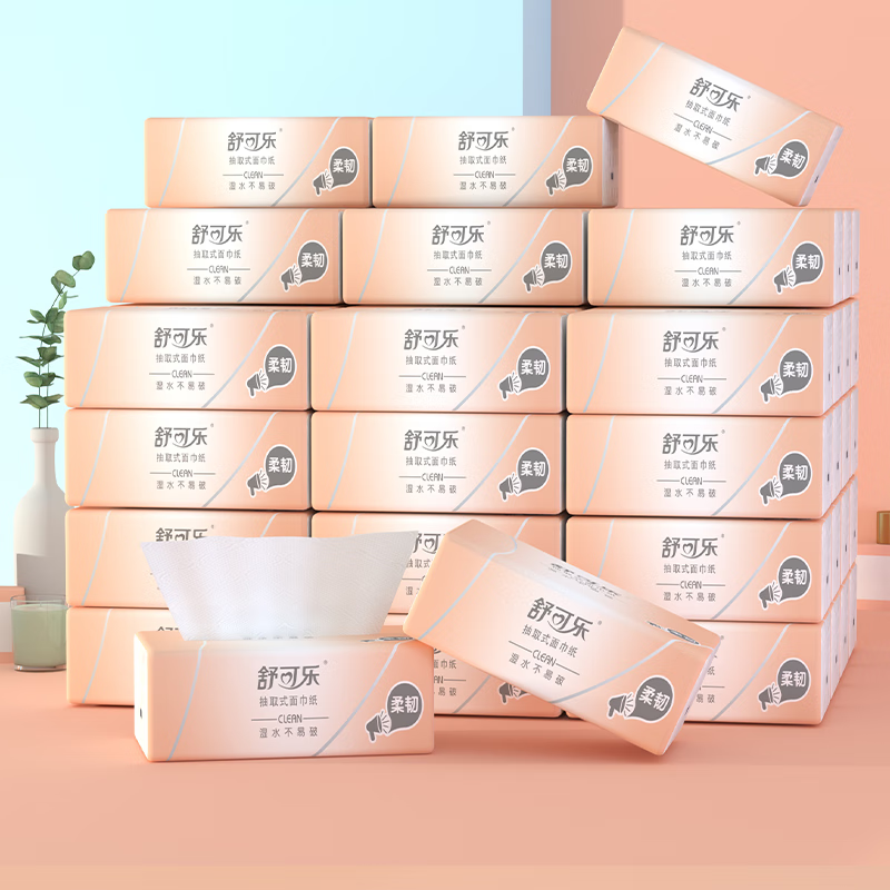¥8.6 舒可乐 原木浆抽纸巾家用纸巾抽4层40抽小包餐巾纸面巾纸 4包 38.6