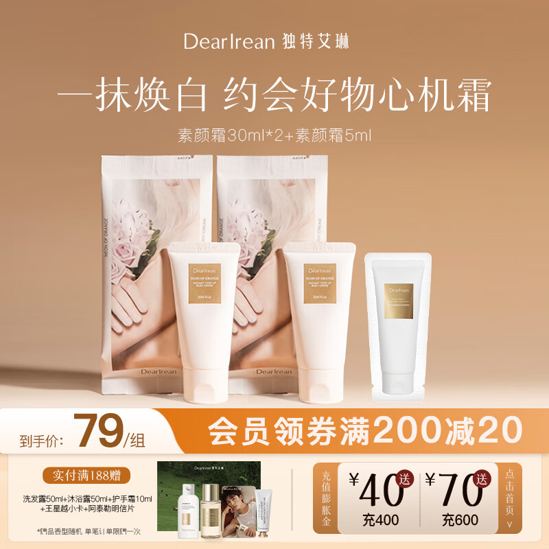 ¥29 独特艾琳(Dear lrean)身体素颜霜润肤遮瑕滋润保湿全身男女可用光影倾橙 素颜霜30ml*2+素颜霜5ml 79