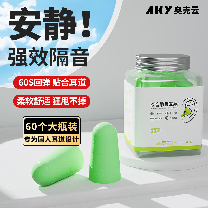 奥克云耳塞 60 只装低至 7.4 元,静音睡眠必备!