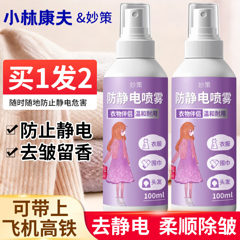 小林康夫防静电喷雾2瓶装到手价1.8元
