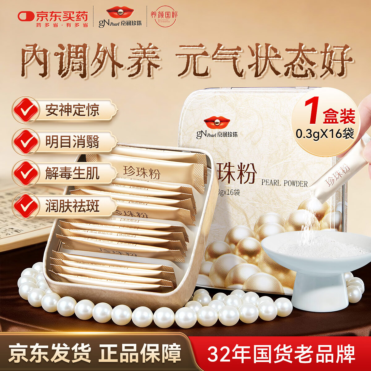 【限时特惠】京润珍珠口服珍珠粉0.3g*16袋仅25.9元!折合1.6元/袋超值抢购