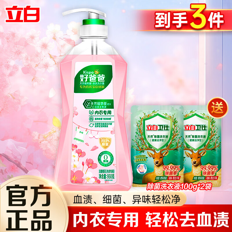 ¥51.9 好爸爸 KISPA亲肤内衣露淡雅樱花旅行装内衣内裤清洗专用洗衣液 亲肤内衣洗衣露950g瓶装组合 61.9