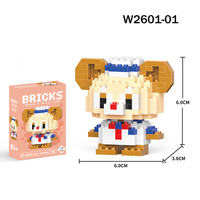 ¥3.14 VTR迷你微小颗粒拼装盲盒玲娜星黛露小积木玩具礼物草莓熊拼插 01【迷你达达熊】181颗粒 4.14