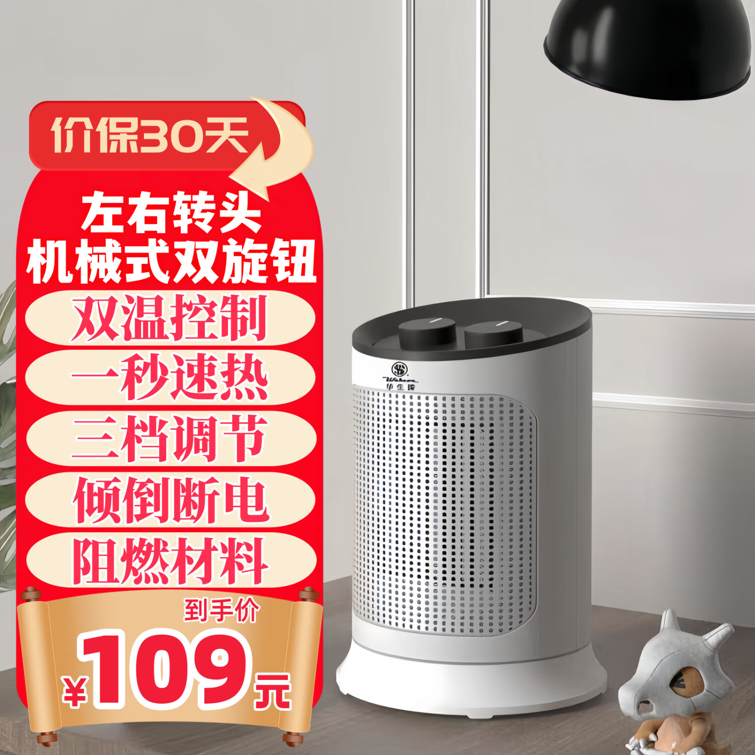 ¥109 华生取暖器神器速热风机电暖器暖风扇冷暖空调 【冷暖两用】 机械式 【阻燃材料】双旋钮 左右转头 149