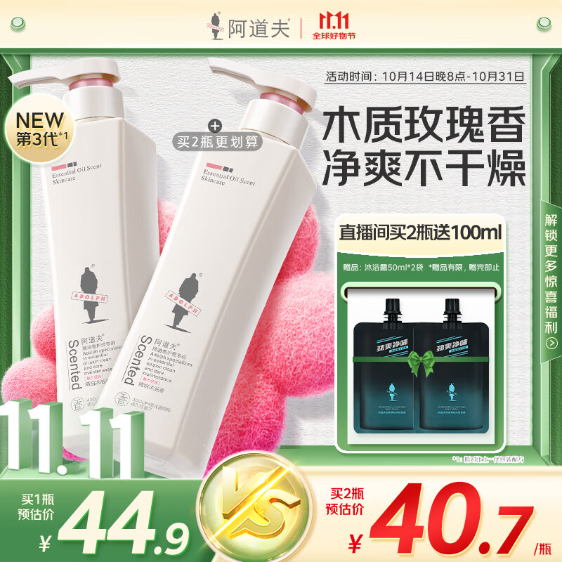 ¥44.3 阿道夫精油沐浴露420ml 香氛沐浴液 嫩滑滋润沐浴乳 经典留香 50.3
