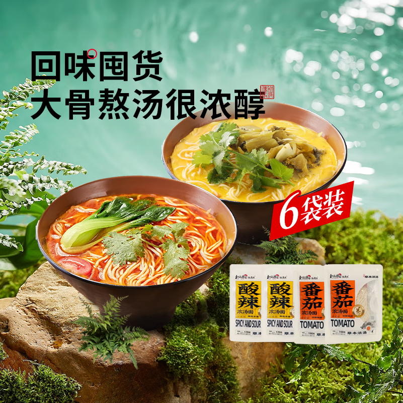 ¥73 和府捞面草本浓汤鲜煮捞面番茄酸辣多口味速食方便面6袋CP 番茄浓汤*4+酸辣浓汤*2 93