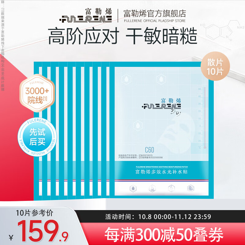 ¥280.9 fulerene富勒烯多效补水修护面膜10片水光贴舒缓保湿敏感肌抗皱抗氧礼物 同款水光贴10片*25ml(散片) 300.9