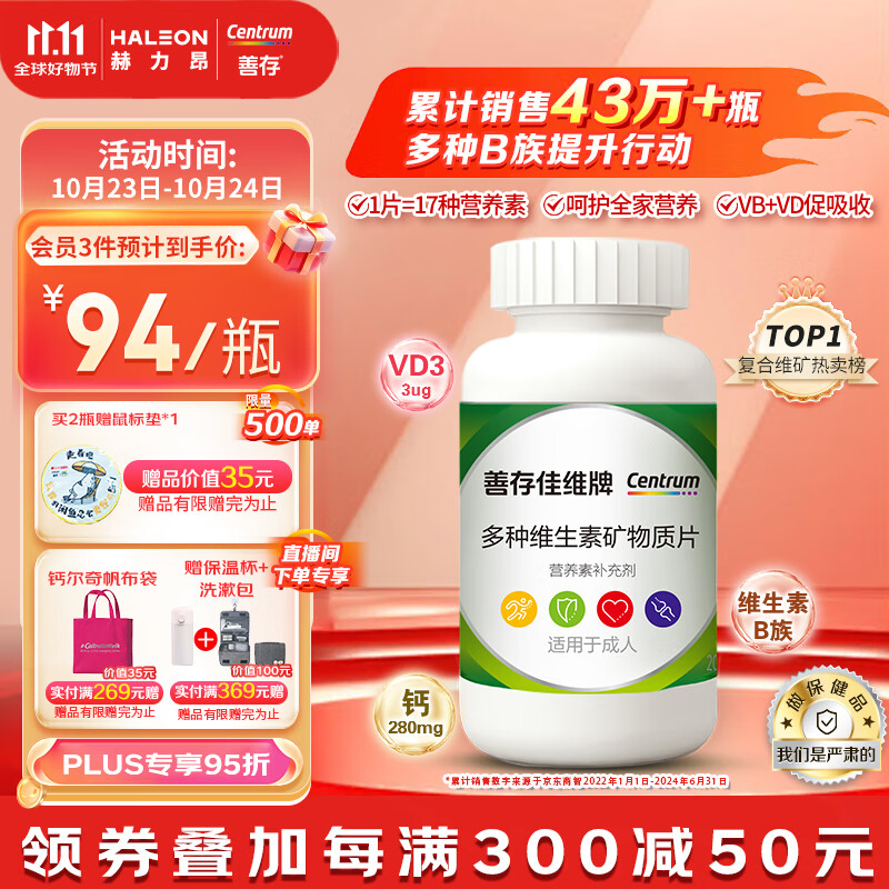 ¥123 善存佳维复合维生素多维片维c维生素e维生素b族钙镁D3男女全家120片 143