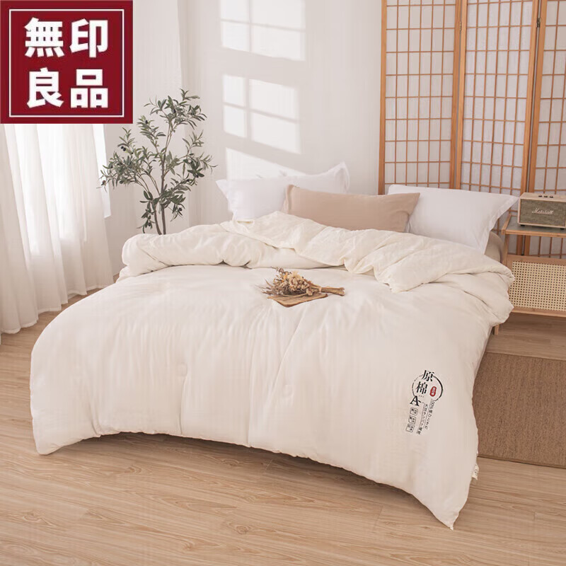 ¥89.9 无印良品大豆被 春秋舒适亲肤纤维被子被芯 单人宿舍加大保暖软糯盖被 米白色200*230cm 冬被约6斤 189.9