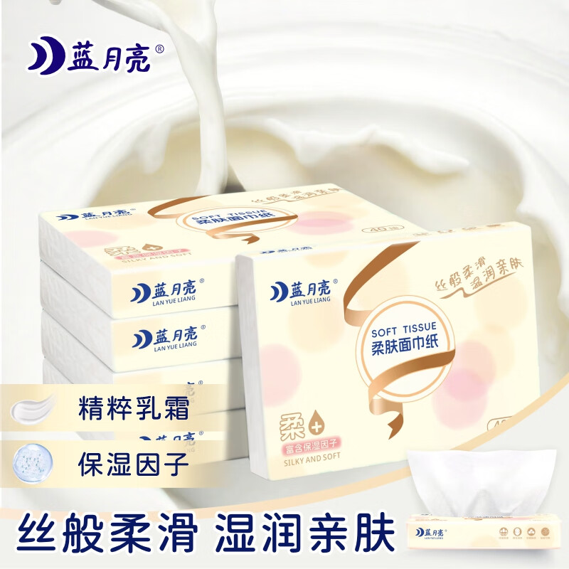 ¥5.99 蓝月亮婴儿云柔巾保湿柔纸巾宝宝专用乳霜抽纸面巾纸M码40抽3层*5包 9.99