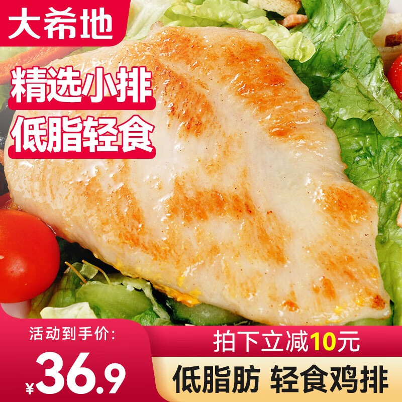 ¥43.9 大希地香煎鸡排鸡胸肉冷冻鸡扒半成品轻食低脂健身代餐鸡排 源头直发 嫩煎小鸡排80g *10袋 46.9