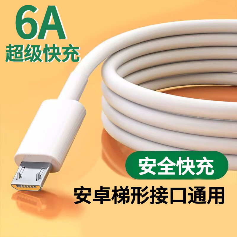 ¥4.8 品奈优6A安卓数据线高速Microusb通用充电线快充适用华为荣耀小米红米oppo三星vivo金立手机闪充单头加长 白色【安卓梯形接口】 1米 5.8