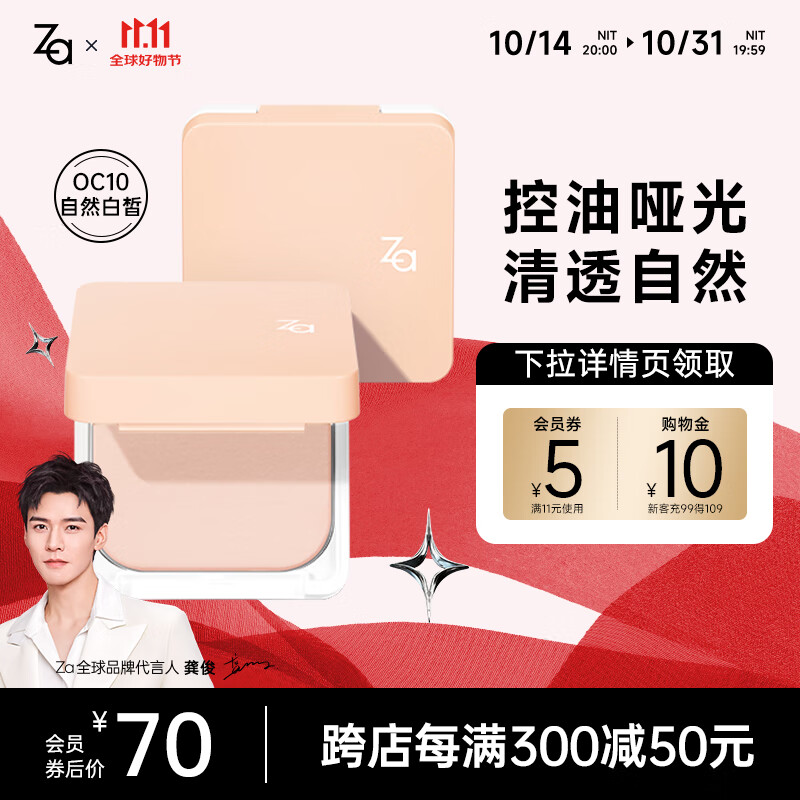 ¥70 姬芮(ZA)灵透晶妍粉饼EX清透帖肤持久定妆不脱妆粉芯OC10 75