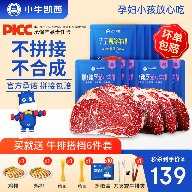 ¥180 小牛凯西牛排原肉整切儿童牛肉家庭非拼接不合成 5西冷+5菲力+【6件套】 200