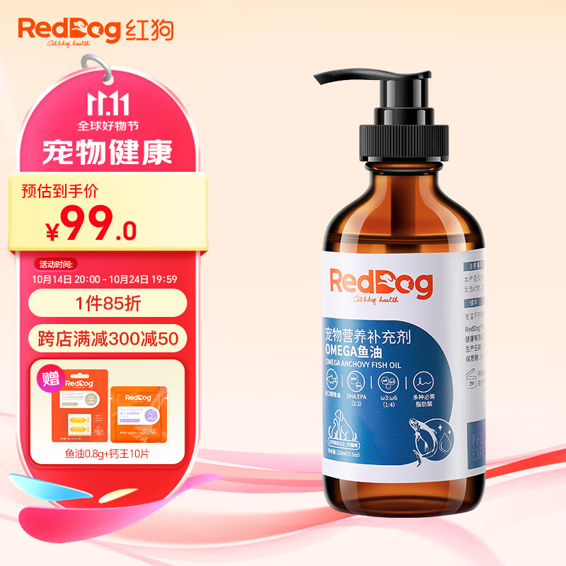 ¥114 RedDog红狗鱼油猫咪狗狗宠物卵磷脂软磷脂爆毛 猫狗维生素 鱼油223ml(约3个月用量) 116