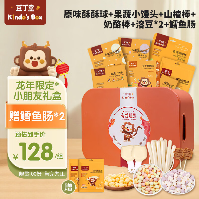 ¥92.9 豆丁盒宝宝零食礼盒7件套 婴幼儿/儿童零食盒大礼包手伴 米饼泡芙磨牙棒 大宝贝礼盒-7件套 122.9