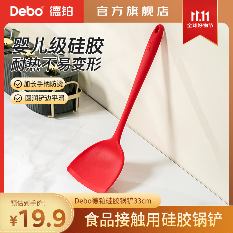 ¥15.9 Debo德铂硅胶铲锅铲耐高温炒菜铲子家用不粘锅专用铲厨具套装汤勺 锅铲- 19.9