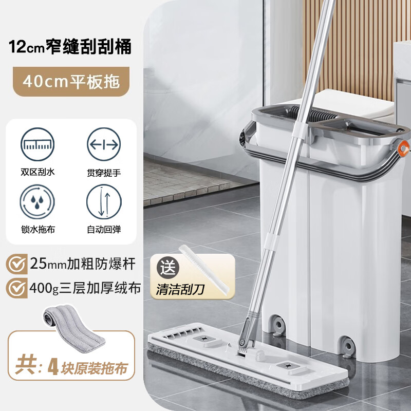 ¥79.9 太太乐平板拖把带桶家用一拖净免手洗2024新款墩布拖布懒人神器拖地拖把 【两档洗脱刮刮桶】40cm拖把-4布 99.9