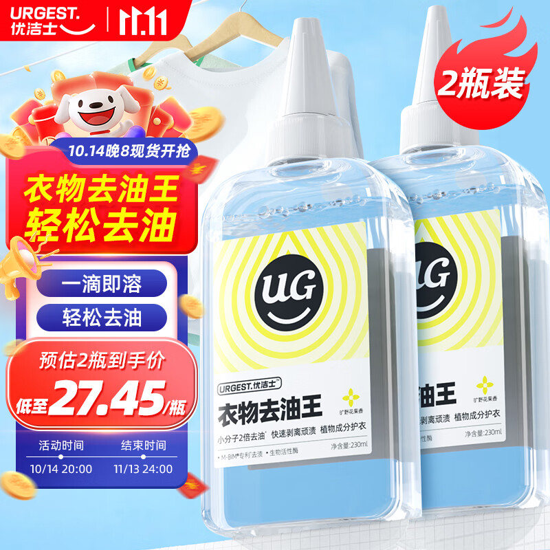 ¥24.9 优洁士去油渍衣服去油王干洗剂洗衣神器衣领净衣物渗透剂羽绒服清洗剂 衣物去油王2瓶装 59.9