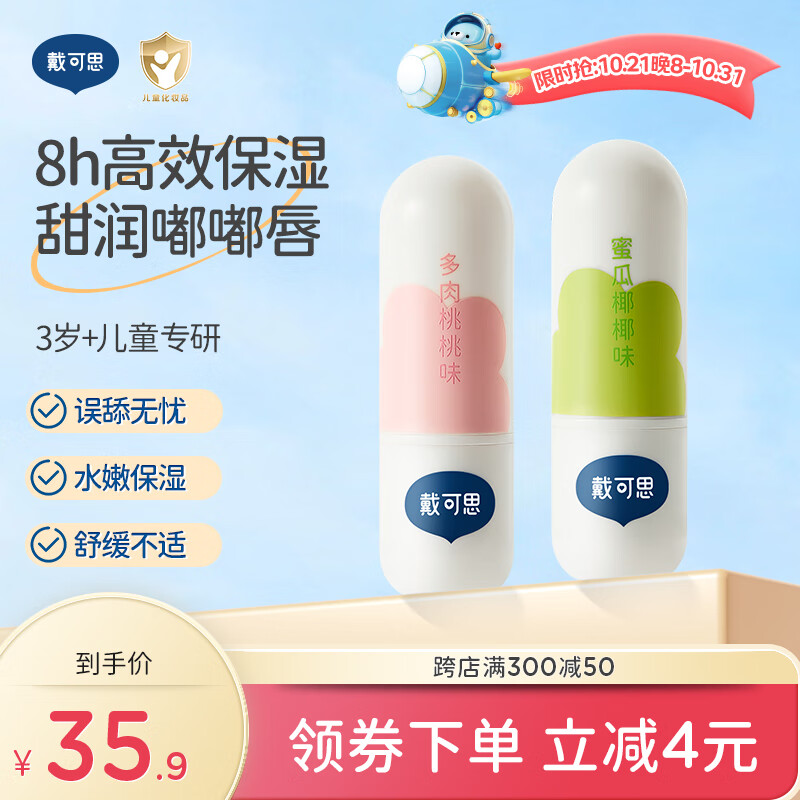 ¥35.9 戴·可·思(Dexter) 婴儿润护唇膏 宝宝儿童护唇膏 保湿防干裂 儿童多肉桃桃味3.6g+蜜瓜味3.6g 39.9