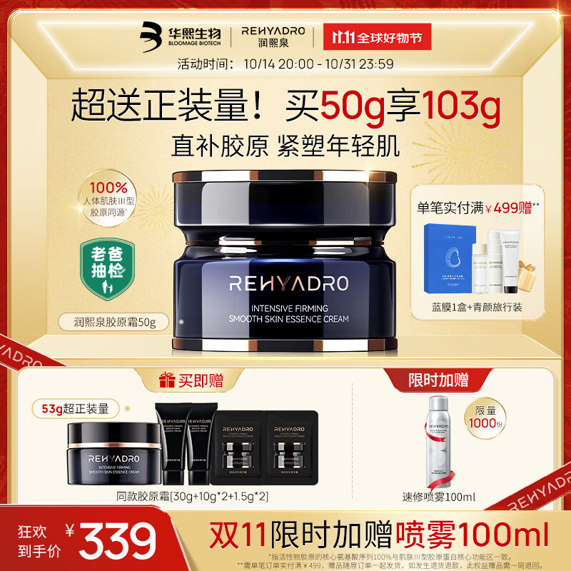 ¥389 润熙泉华熙生物胶原霜抗皱淡纹补水保湿修护面霜女士 护肤品礼物 50g 409