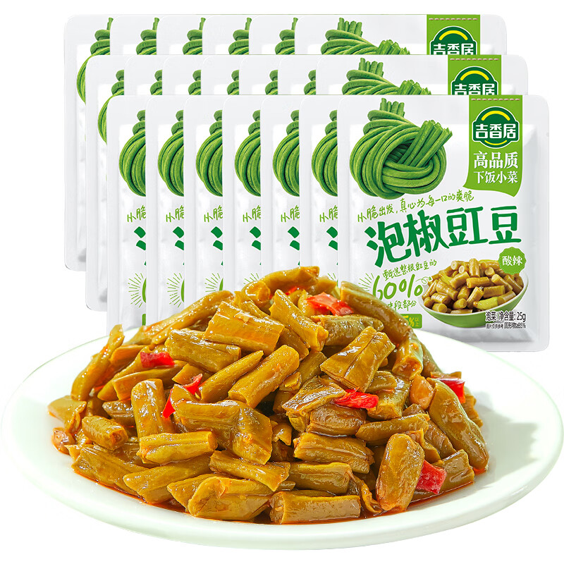¥12.9 吉香居 泡椒豇豆25g酸豆角酸豇豆下饭菜咸菜泡菜配粥小包 25g*20袋 17.9