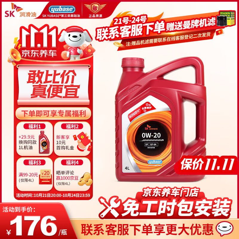 ¥197.1 SK 美系PRO 超级全合成汽机油0W20 SP级4L 国5/6别克雪佛兰福特JEEP 219