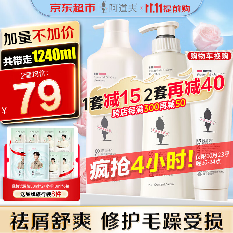 ¥79 阿道夫洗发水精油去屑控油蓬松止痒柔顺香氛露洗头膏乳男女士留香套装 祛屑洗发水560ml+护发素520g 加量不加价 99