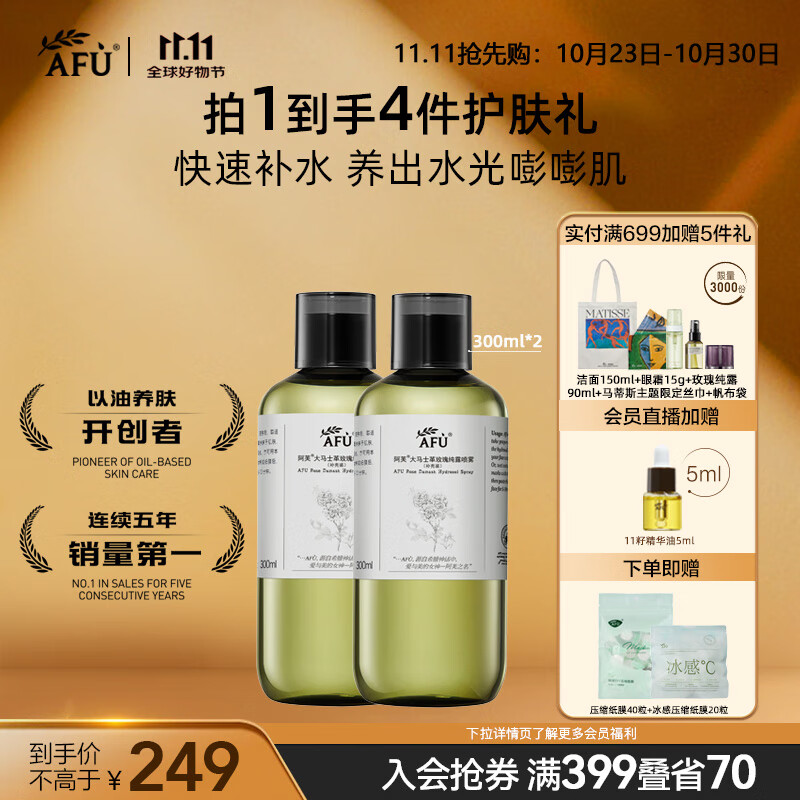 ¥159 阿芙(AFU) 大马士革玫瑰纯露爽肤水 补水保湿提亮湿敷护肤品送礼物 玫瑰纯露套装600ml 249