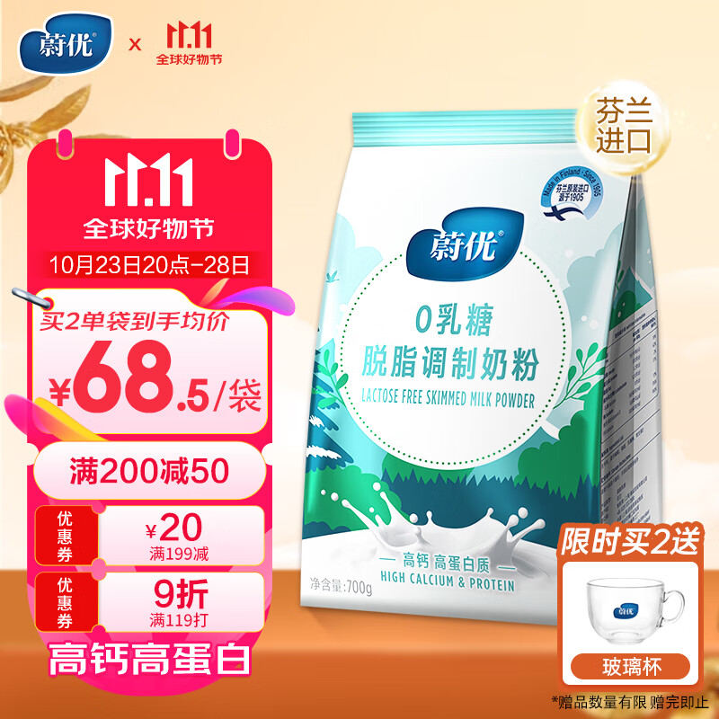¥105 VALIO蔚优 0乳糖牛奶粉 高钙脱脂奶粉700g 高蛋白学生成人奶粉 115