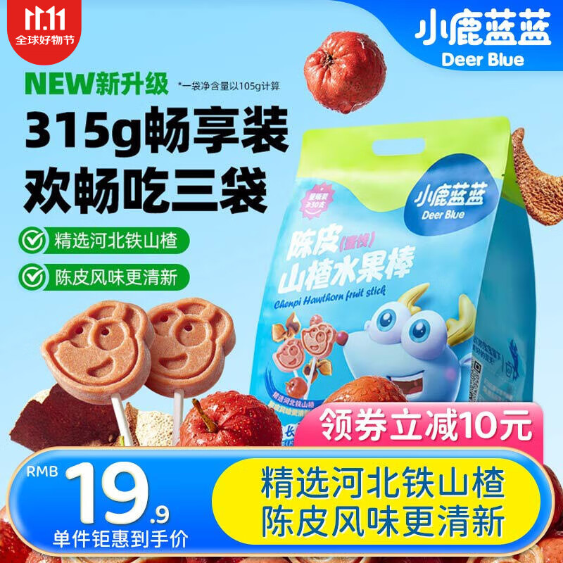 ¥19.9 小鹿蓝蓝宝宝陈皮山楂棒【30支】宝宝儿童陈皮山楂棒零食 鲜果制作315g 29.9