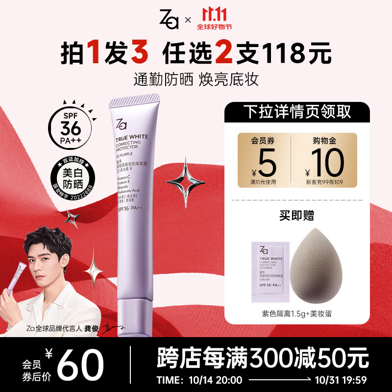 ¥60 姬芮(ZA)紫色焕真润色隔离霜防晒遮瑕霜妆前乳35g SPF36 65