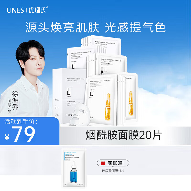 ¥39 优理氏(UNES) 烟酰胺安瓶面膜深层补水保湿全脸提亮紧致润肤改善暗沉滋养舒缓 【20片】烟酰胺面膜 109