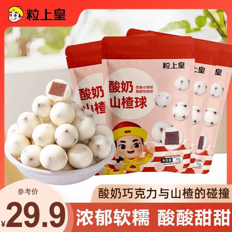 ¥19.9 粒上皇酸奶山楂球休闲追剧小零食解馋夹心小零食 70g*4袋 29.9