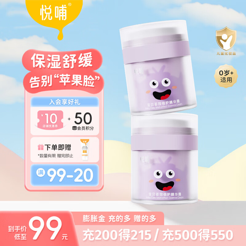¥102 悦哺儿童面霜婴儿滋润保湿润肤霜 宝宝干燥舒缓补水护肤霜新生儿可用 【超值囤货】面霜50g*2瓶 119