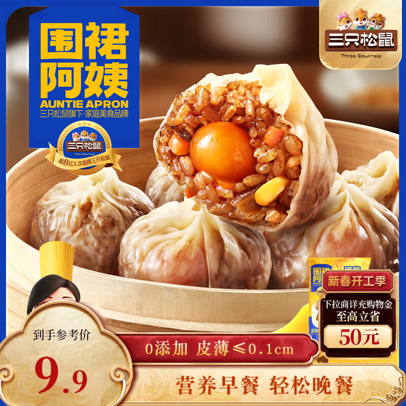 三只松鼠特惠:纸皮烧麦 3.2 元、捞汁海鲜 9.9 元、坚果礼盒 39 元