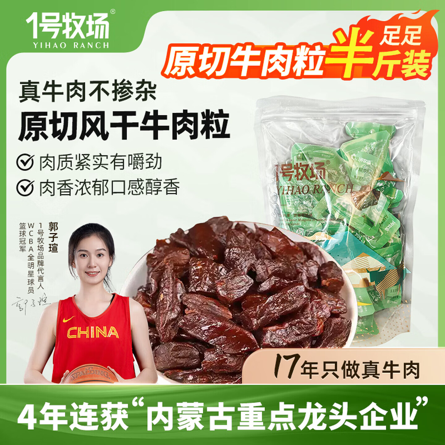 1号牧场风干牛肉粒250g,到手价29.9元