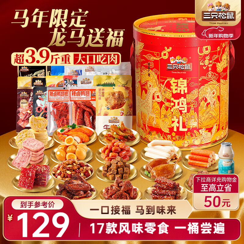 三只松鼠锦鸿礼肉食桶2098g仅需39元