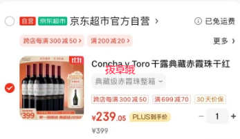 在售价399元,每满300元可减50元,可领359-30元优惠券、199-20元券,会场可领200-20元补贴券,app端主会场60补贴下面惊喜红包可领随机金额(小编截图的是300-30券,之前领过500-40),店铺新客下单立减10元,到手实付239.05元包邮。进口红酒不到40一瓶,还是单一园酿造,喜欢喝红酒的菜友可以试试。