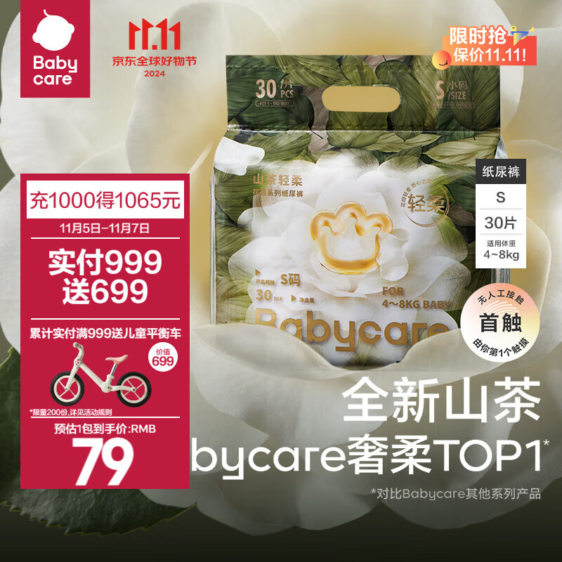 ¥79 bc babycare山茶花纸尿裤新生儿婴儿宝宝花苞裤尿不湿迷你装超薄透气秋冬不闷 纸尿裤-S码 1包 30片 【4-8KG】 99