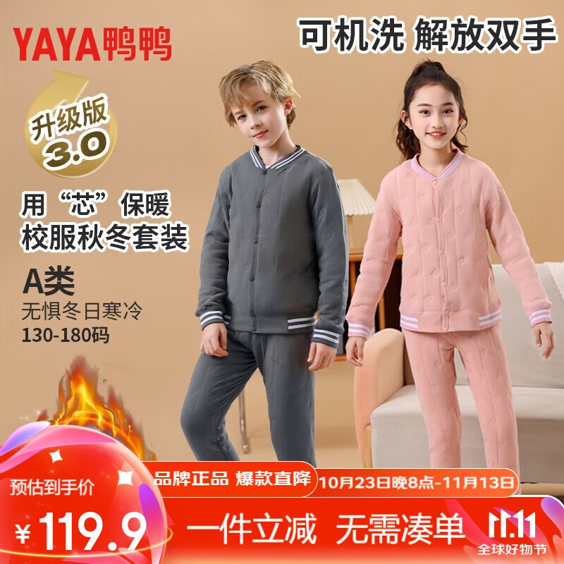 ¥119.9 鸭鸭时尚校服神器秋衣秋裤绵羊毛套装内胆棉衣棉服加厚冬保暖内衣 粉红色 130建议体重45-55斤 239.9