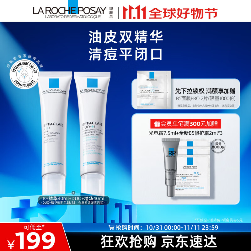 ¥199 理肤泉清痘精华乳2件套装(K+DUO乳效期至25/12)控油祛痘去黑头护肤品 204