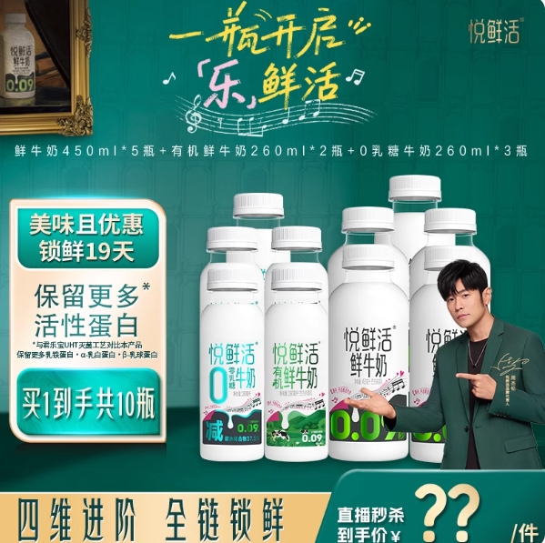 54.5元包邮!悦鲜活 450ml×5瓶+260ml×5