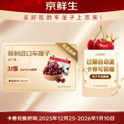 197元!京鲜生 智利进口车厘子3J级 5斤装